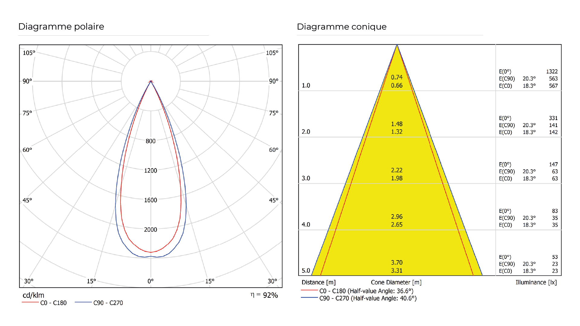 - Efficacité lumineuse : 92 %